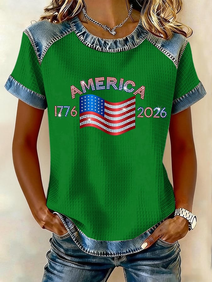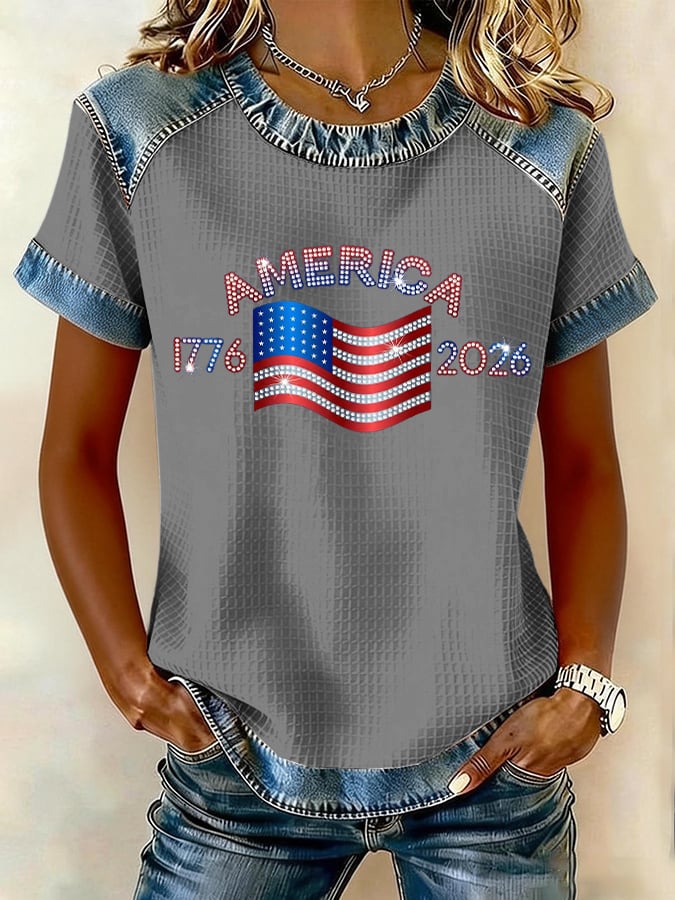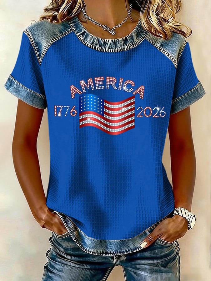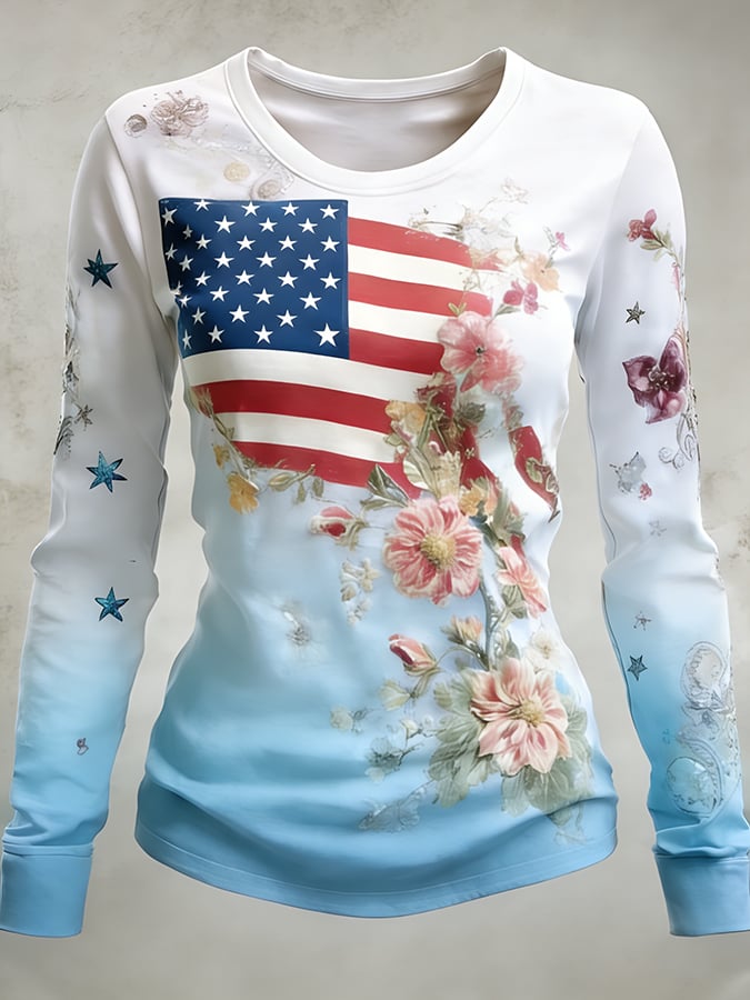 Women's 250th Anniversary American Flag Vintage Floral Print Long-Sleeve Top