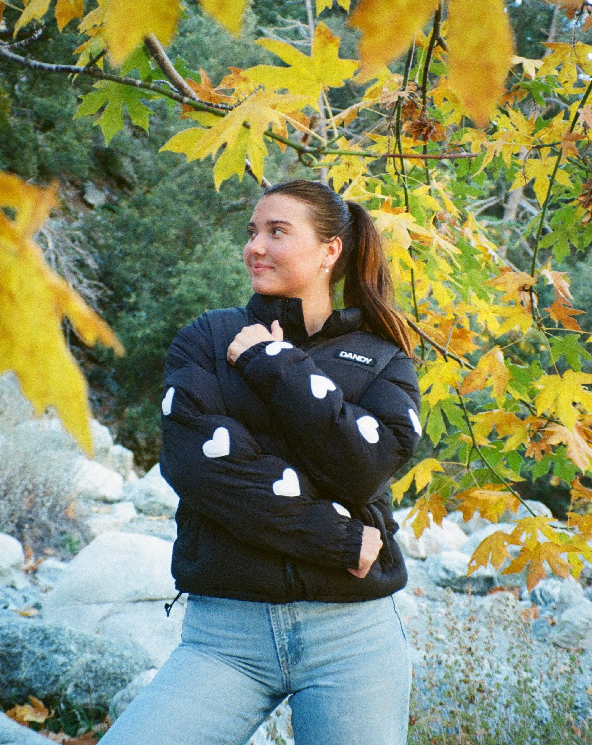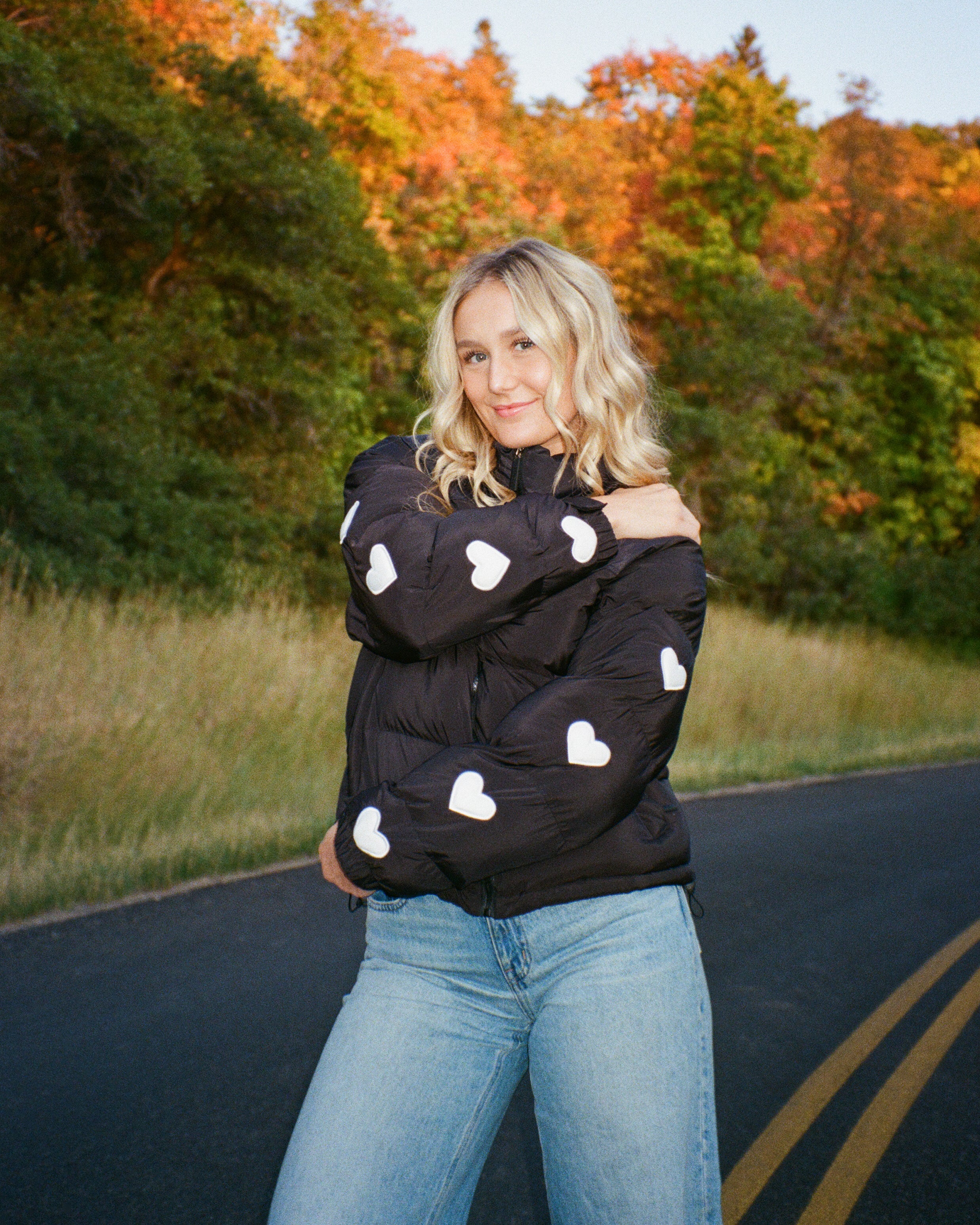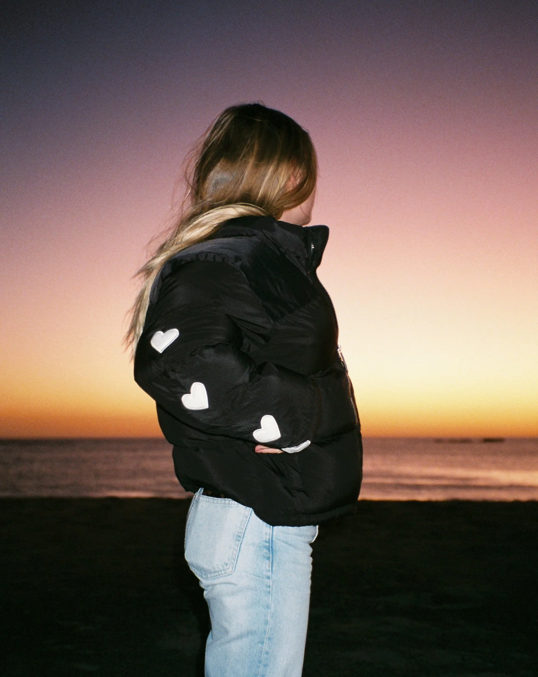 "Heart on My Sleeve" Puffer Jacket in Black