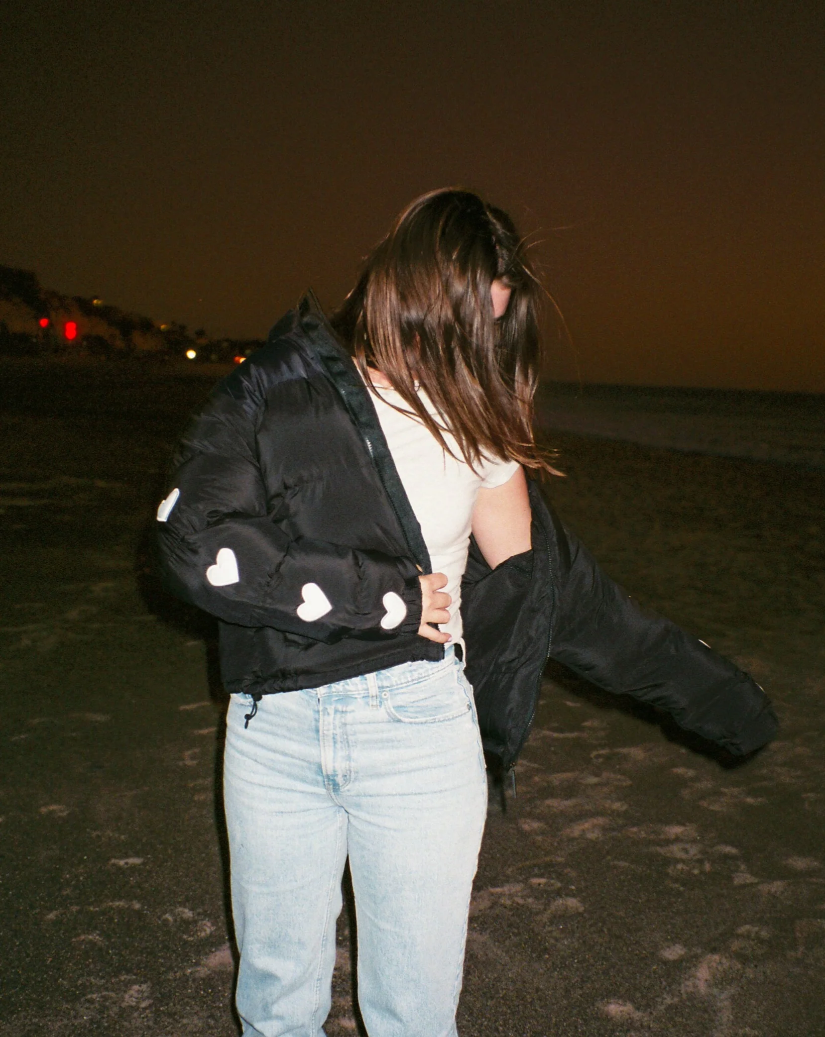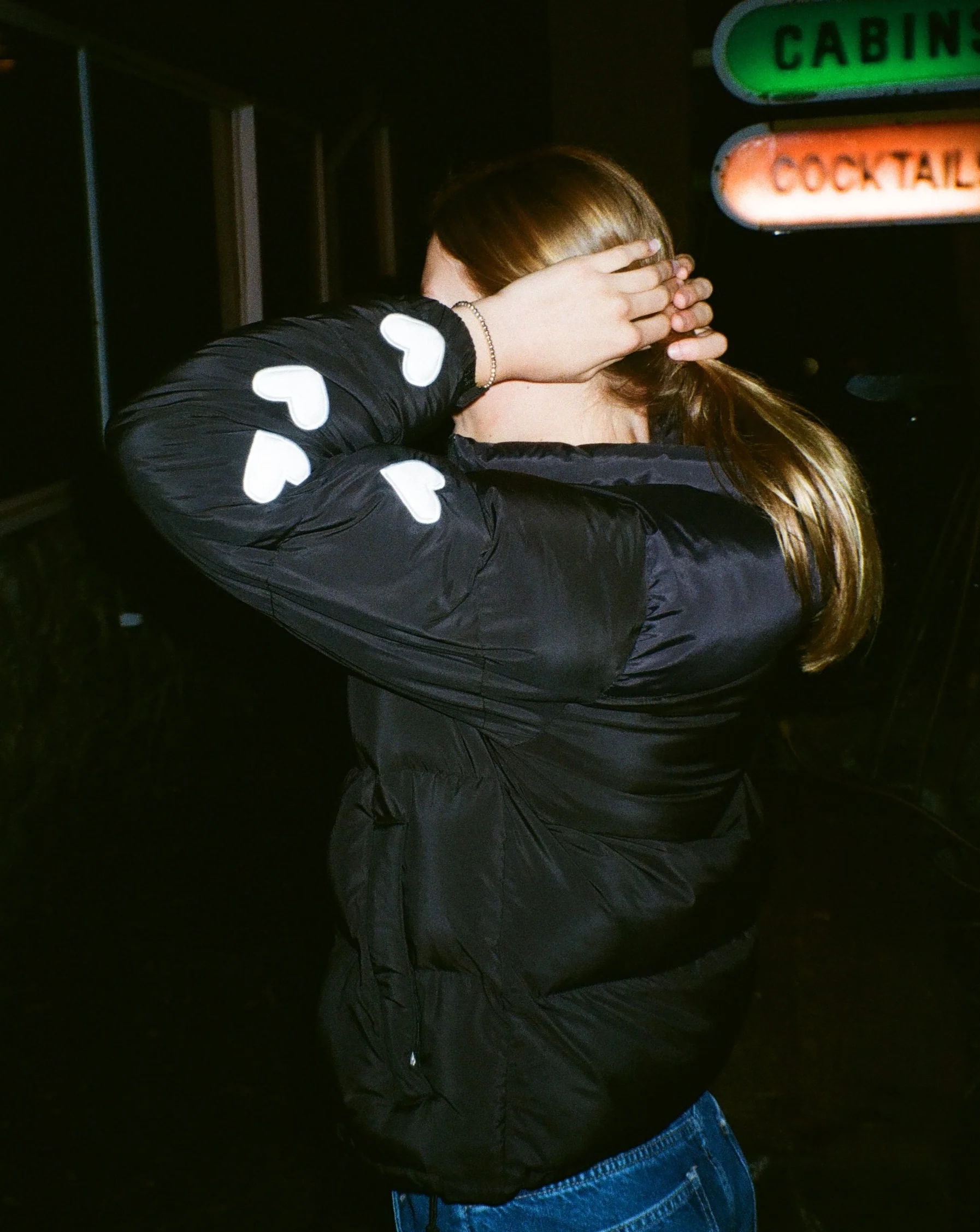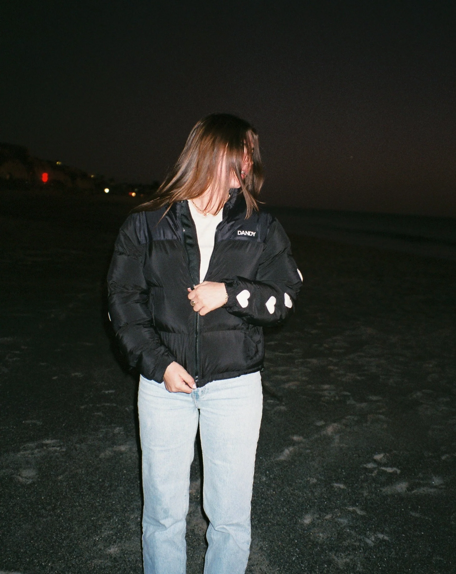 "Heart on My Sleeve" Puffer Jacket in Black