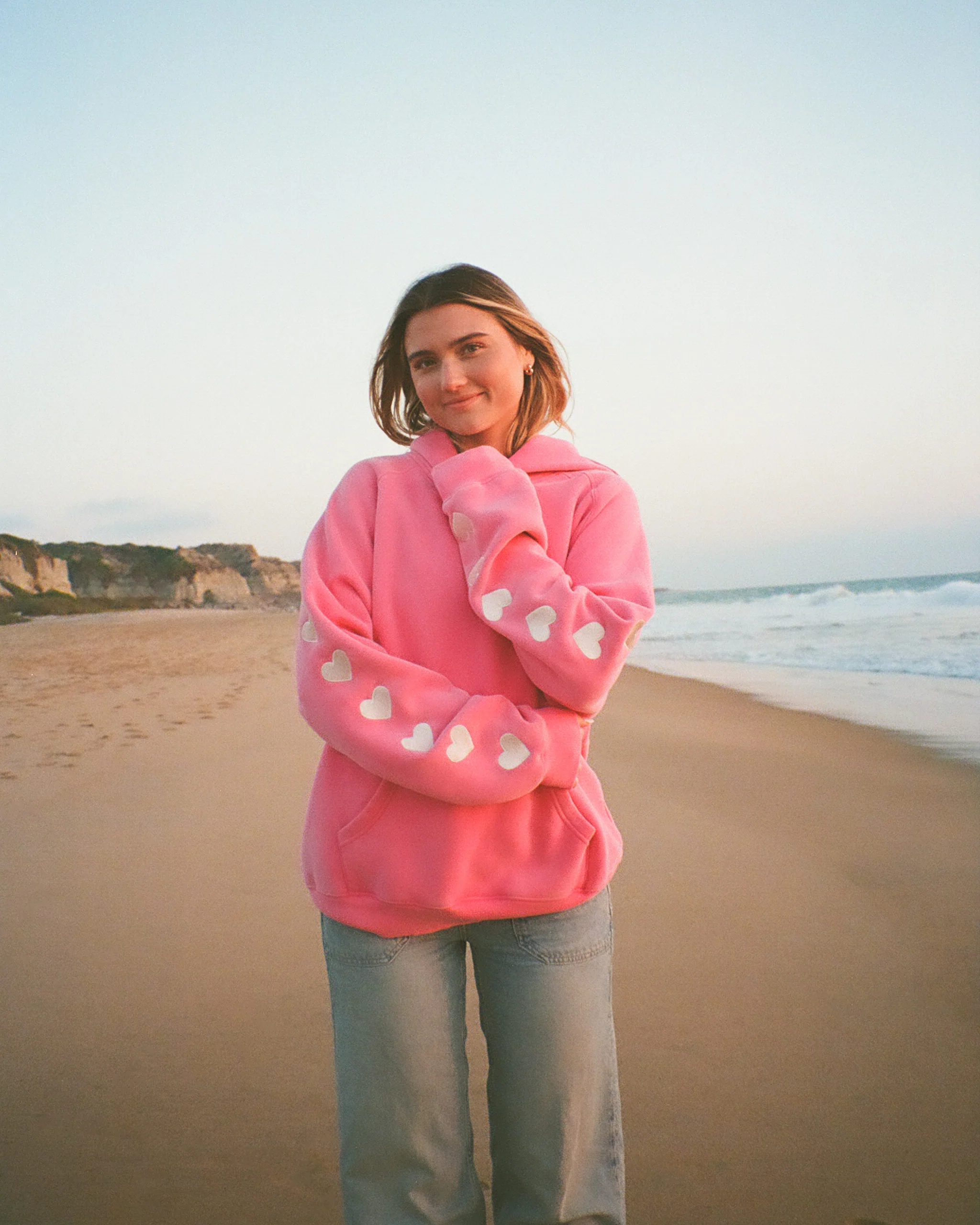 "Heart on My Sleeve" Oversized Lux Hoodie in Vintage Washed Pink