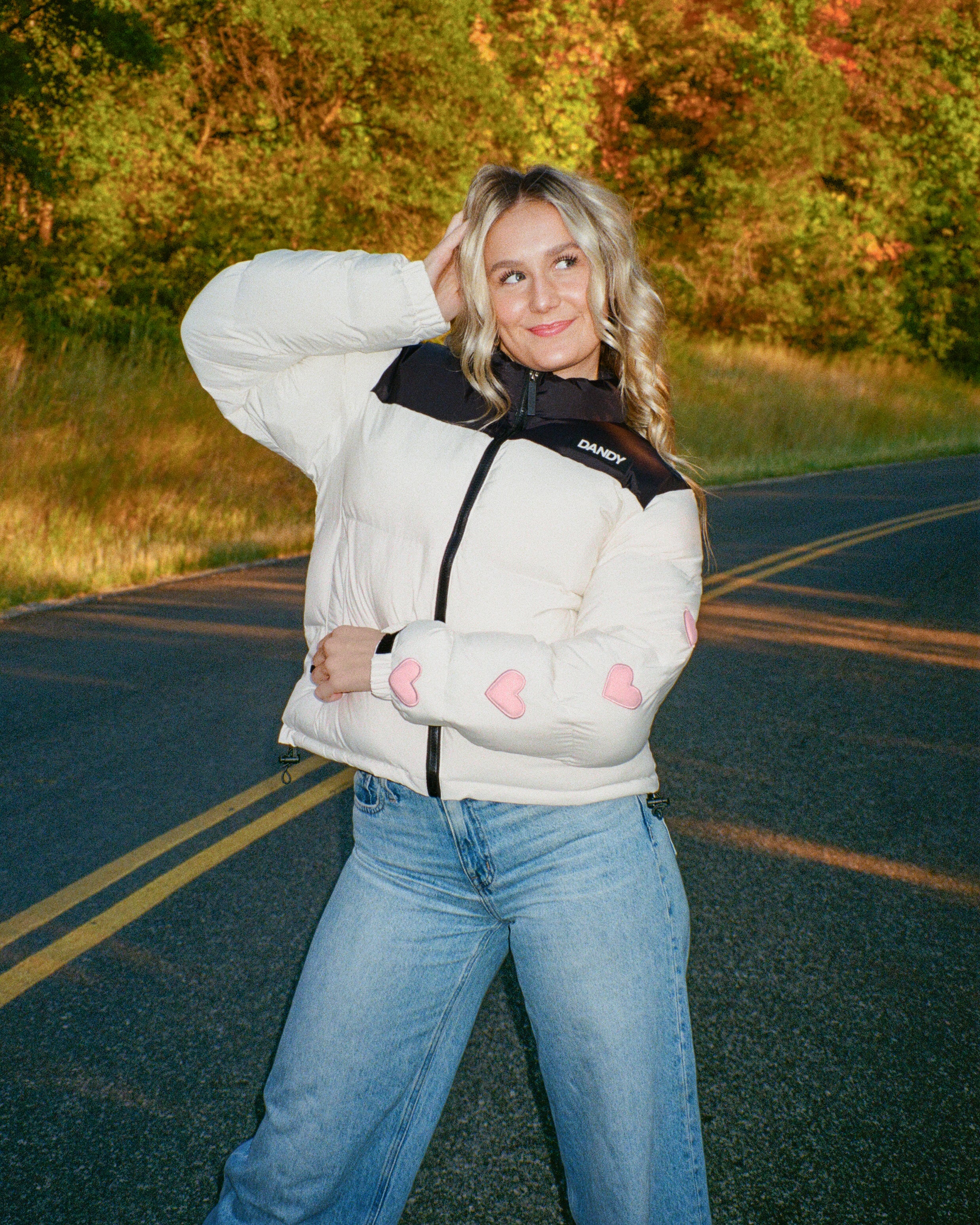"Heart on My Sleeve" Puffer Jacket in Cream