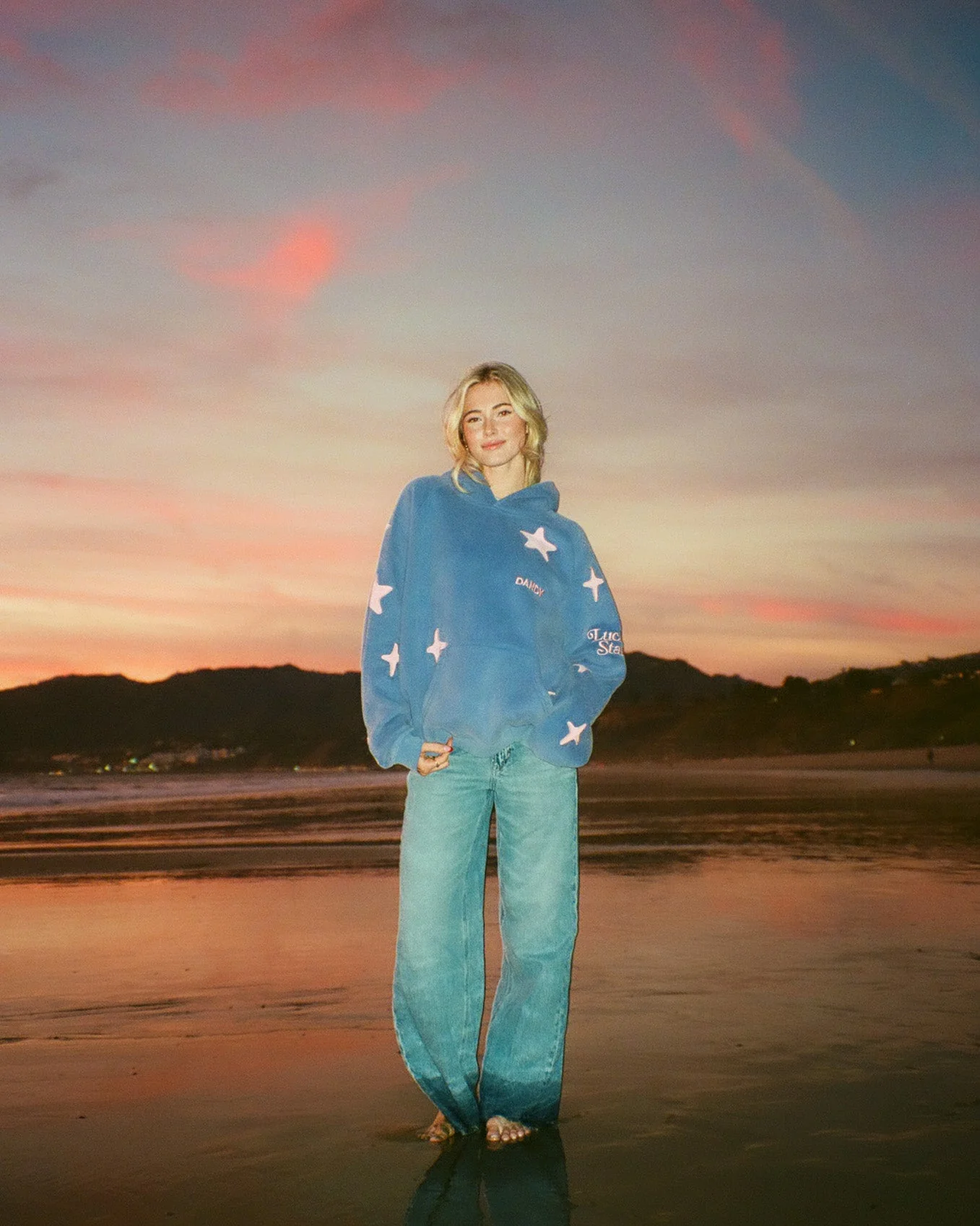 "Lucky Stars" Oversized Lux Hoodie in Vintage Washed Blue