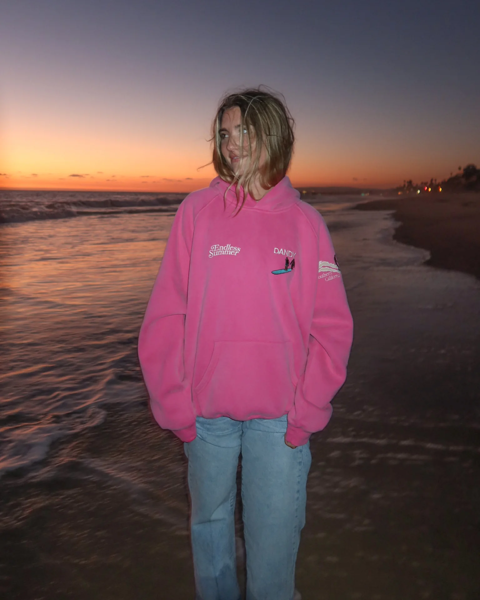 "Let's Watch the Sunset" Oversized Lux Hoodie in Vintage Washed Pink