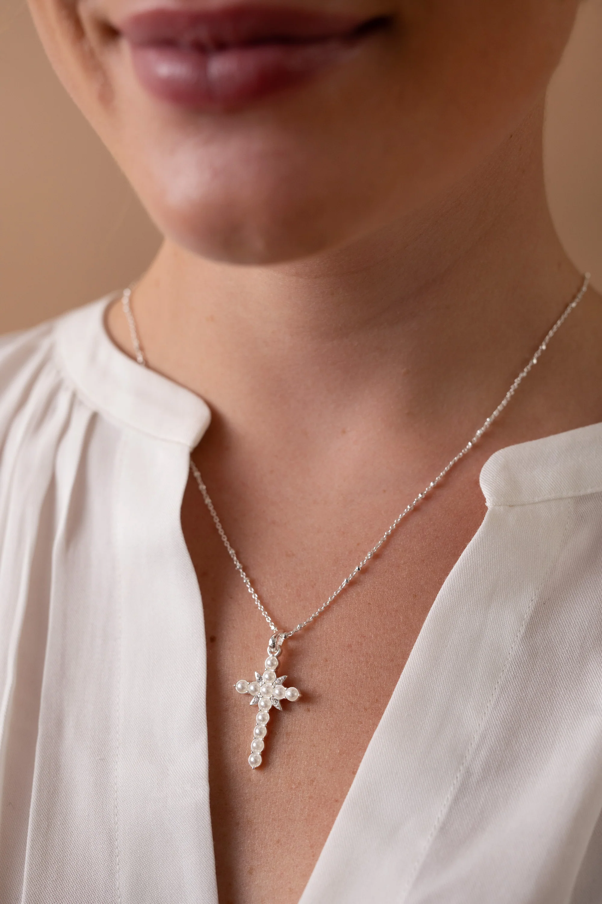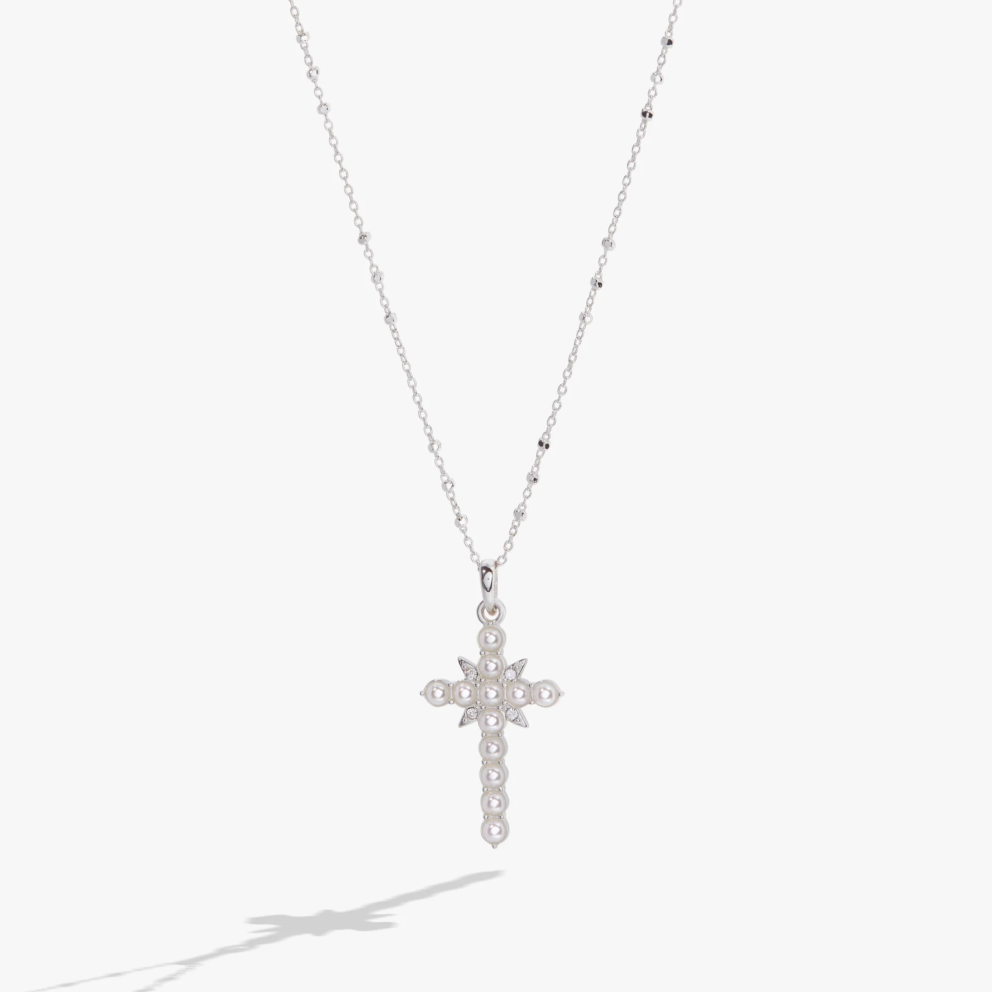 Cross And Heart Necklace, Sterling Silver