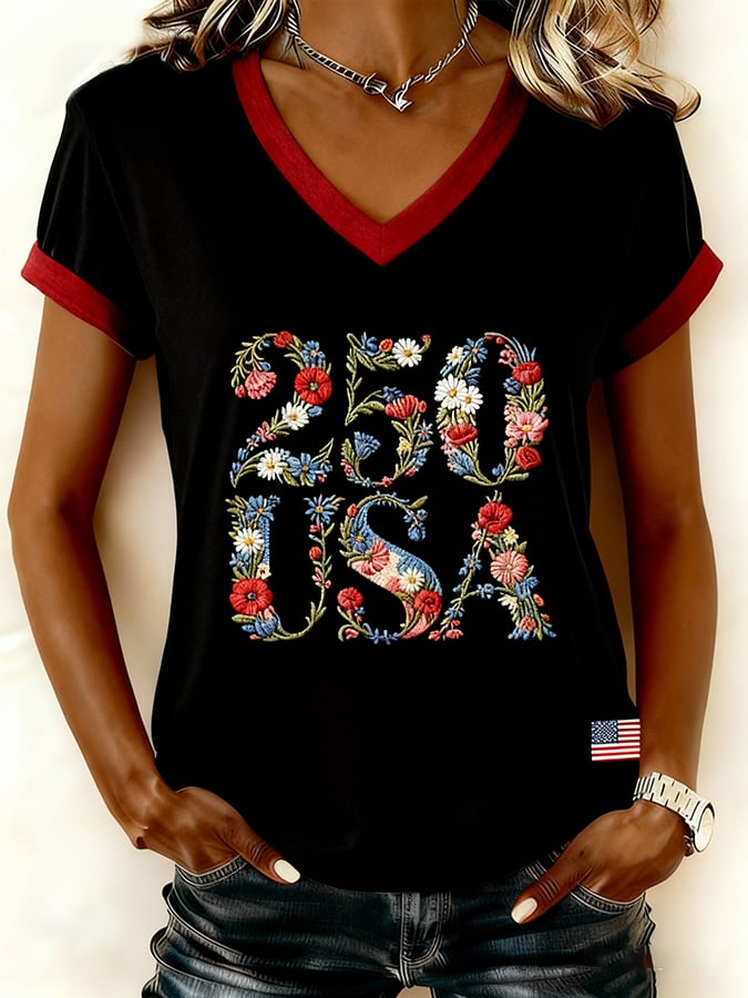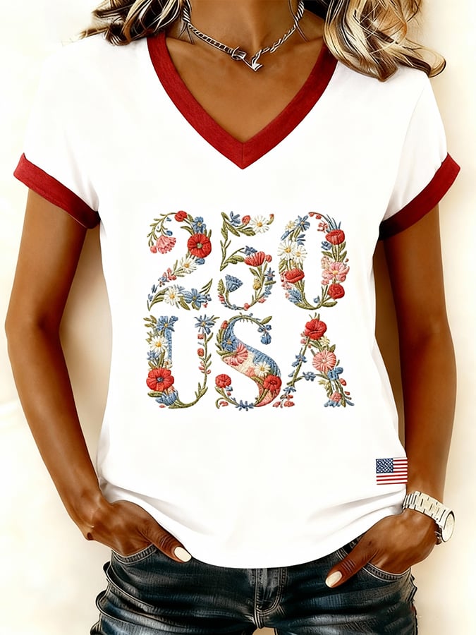 Women's Casual Bohemian American 250th Anniversary Print V-Neck Sweatshirt