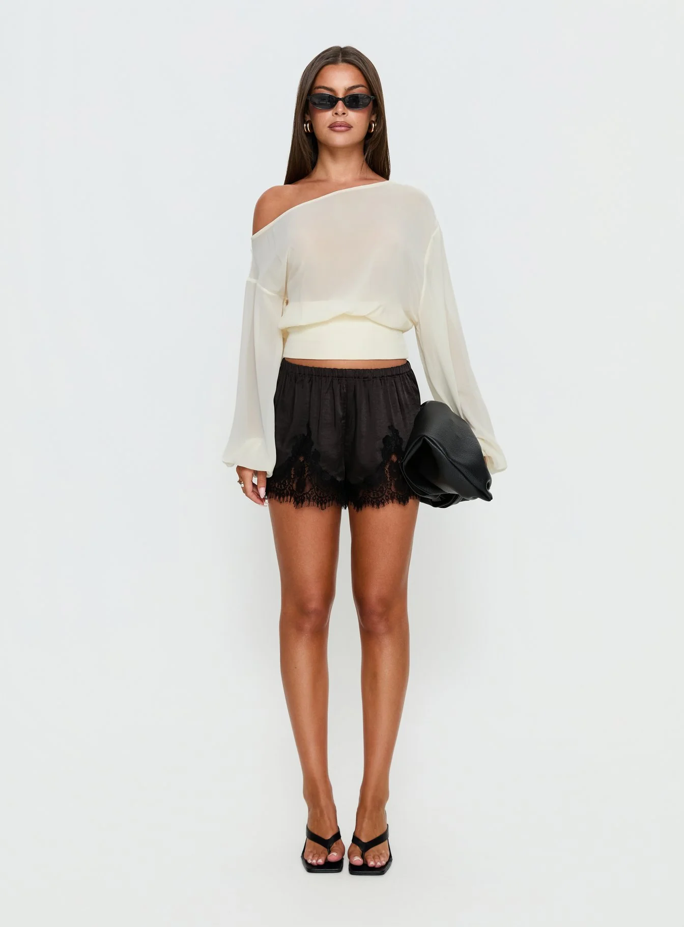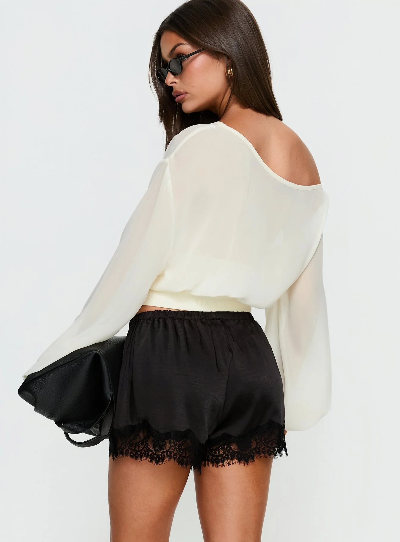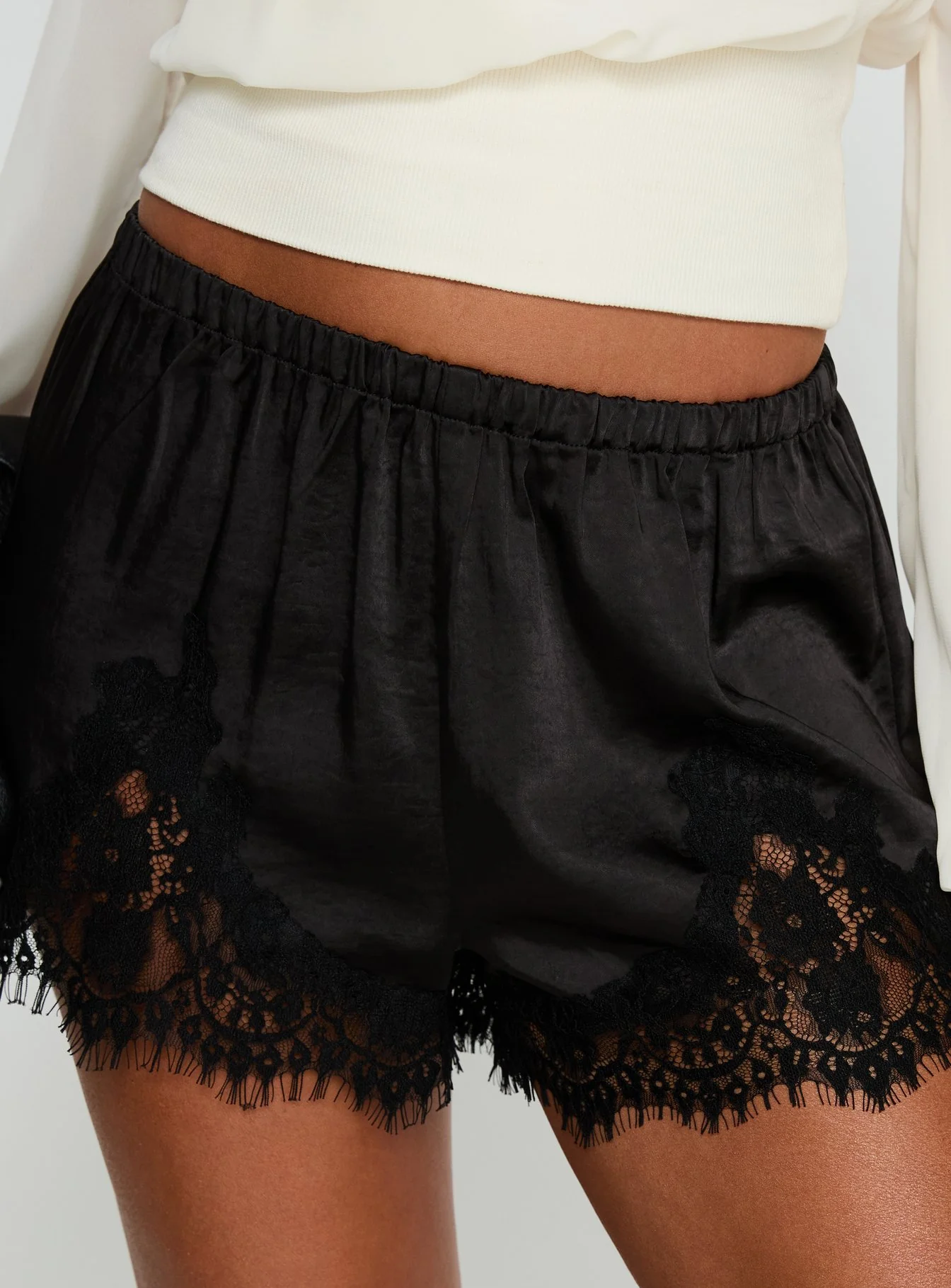 Parisse Satin Lace Trim Shorts Black